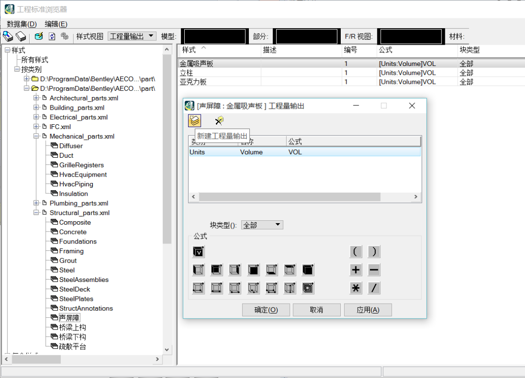 工程量统计是基于Microstation平台的专业软件AECOsim Building Designer中进行提取。