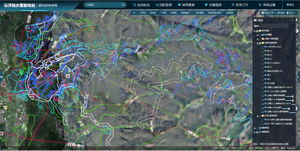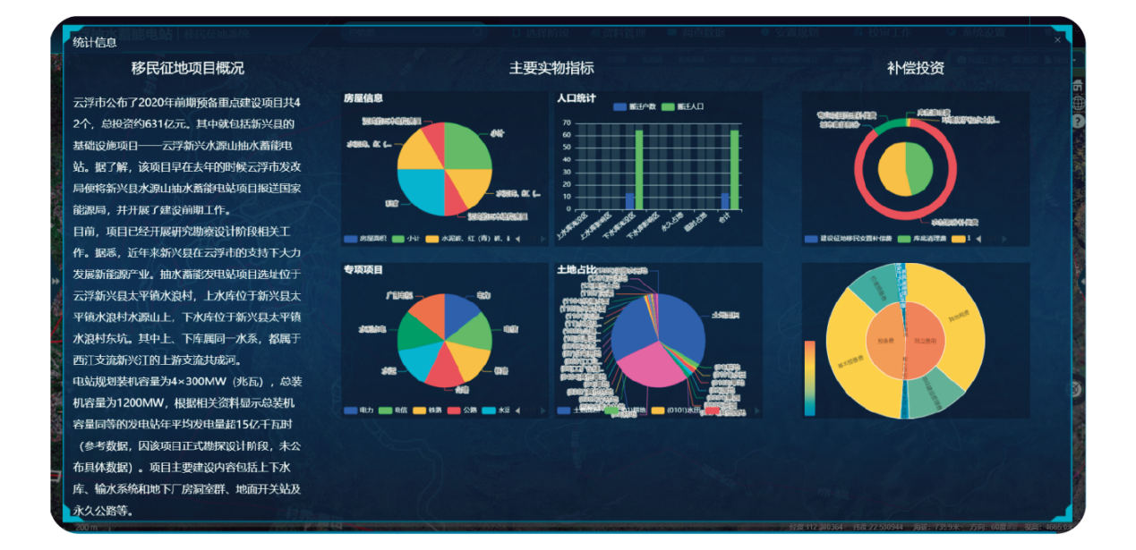 系统集GIS、BIM及关系型数据服务于一体。采用WebGL2.0技术、轻量化转换引擎,将GIS、BIM、实景模型、无人机、全景相机、移动端APP和征地与移民安置数据库进行深度整合。通过业务系统革新征地移民专业的工作手段和方法,无需安装软件,在电脑网页就能打开和使用全部系统功能开展设计工作。