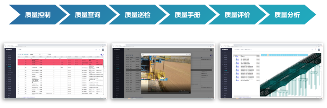质量监控主要指对该抽水蓄能工程施工质量进行实时监控和直观展示,主要包括施工质量控制、施工质量信息监控、施工质量巡检、施工质量规范查询、施工质量评价以及施工质量分析等,将施工质量信息与其所属的工程模型进行关联,可实现在三维可视化环境中对正在施工部位的施工质量信息的实时监控与展示,更直观地监控工程施工过程、展示质量控制成效。