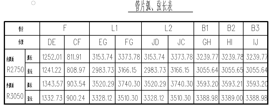 工具自动提取管片的弧长及弦长表,管片宽度表,以及衬砌圆环图